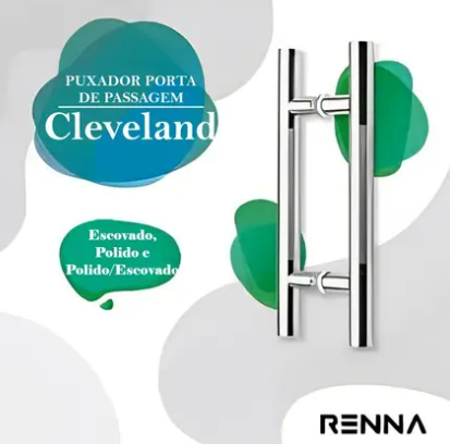 PUXADOR PORTA PASSAGEM INOX ESCOVADO CLEVELAND 304 32X400X600 MM COMPRIMENTO PARAFUSO PASSANTE-RENNA